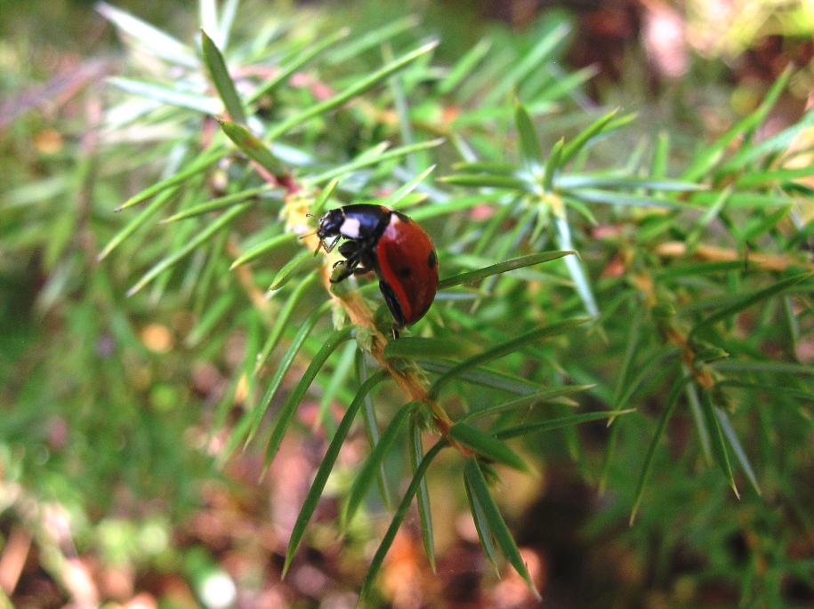 Dzisiaj również kilka zdjeć, tym razem z nietypowymi modelkmi, sa to nasze rodzime biedronki siedmiokropki, nie jakieś tam azjatyckie których ostatnio wszedzie pełno było, bo szukały miejsc do przezimowania. Te biedronki spotkałam w lesie na jałowcu, ukryły sie przed nalotem azjatykich wrogów. Biedronki azjatyckie wypieraja niestety nasze rodzime gatunki biedronek :(